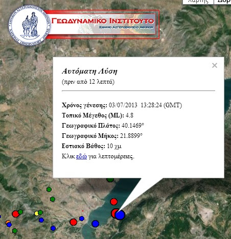 4.6 βαθμών της κλίμακας ρίχτερ ήταν η σεισμική δόνηση που ταρακούνησε την Κοζάνη στις 16:27 το απόγευμα της Τέταρτης.