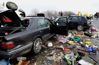 Εκτός από το εκδρομικό λεωφορείο στο ατύχημα ενεπλάκησαν δύο νταλίκες, ένα φορτηγό ψυγείο, και δύο ΙΧ αυτοκίνητα.