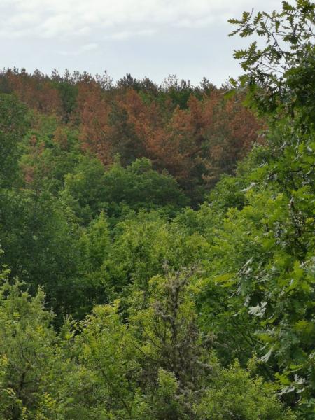 «Τον χειμώνα διαπιστώσαμε εκτεταμένες ξηράνσεις δένδρων πεύκης (τραχεία, θαλάσσια , μαύρη κ.λ.π.), τα οποία εγκαταστάθηκαν στην περιοχή μας με τεχνητές αναδασώσεις τις προηγούμενες δεκαετίες. Με δείγμα που έστειλε η Υπηρεσία μας στο Ινστιτούτο Δασικών Ερευνών, διαπιστώθηκε ότι οι ξηράνσεις οφείλονται στα φλοιοφάγα έντομα της οικογένειας Curculionidae και υπήρξε σύσταση για την απομάκρυνση των προσβεβλημένων δένδρων» πρόσθεσε.