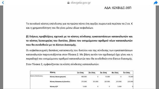 Β) Προς τι η τόσο μεγάλη διαφορά στο κόστος κατασκευής των δικτύων μεταξύ ιδιώτη παρόχου και ΔΕΔΑ;